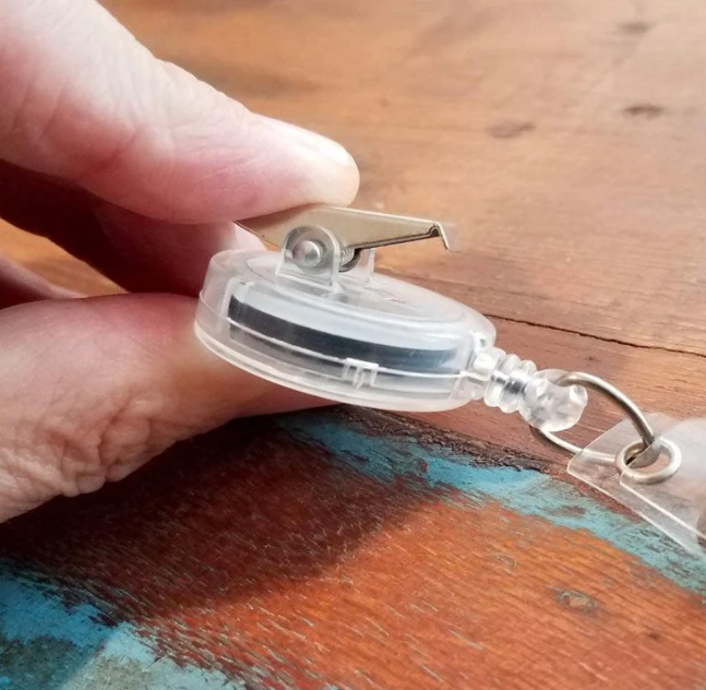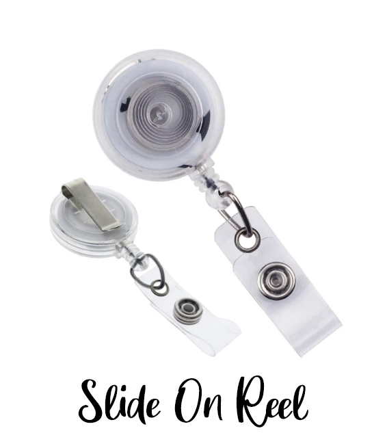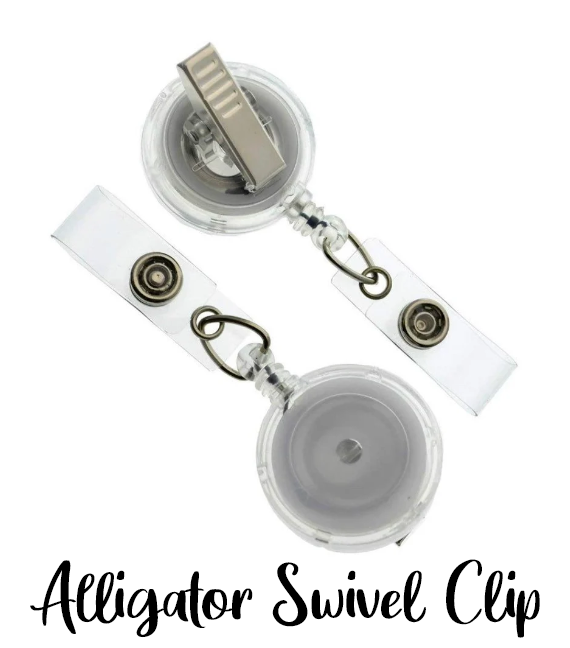 Available in a variety of colors. Item is 2" wide and attached to your choice of an Alligator Swivel Clip, Slide On Badge Reel or Lanyard with a low profile self-fastener. The badge reels retract up to 34”. The lanyard provides a breakaway feature, but has a firm enough grip to prevent the lanyard from snapping apart when the reel is being used. Beads are optional on the Alligator and Slide On Reels only.