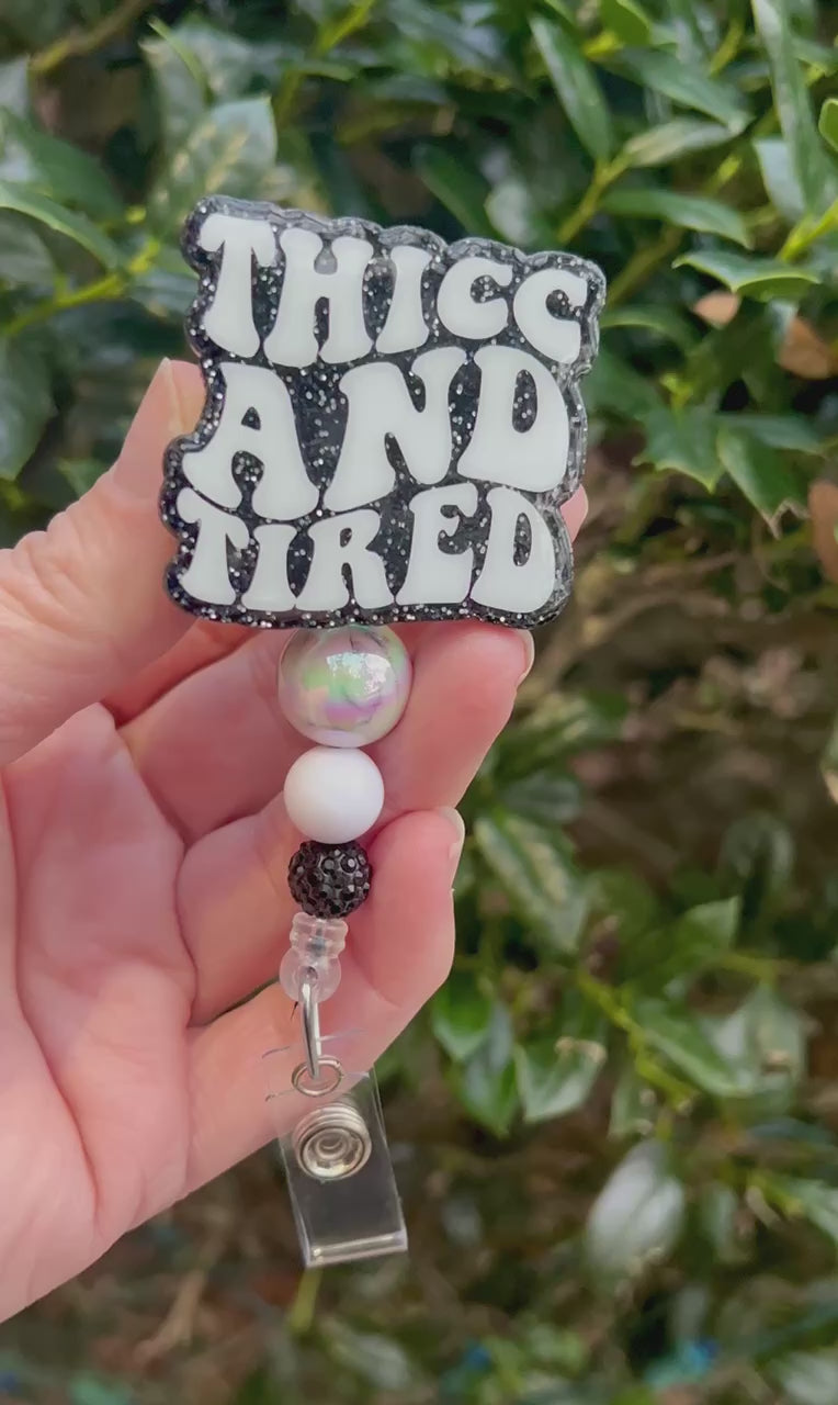 Thicc and Tired badge reel! This hilarious badge reel will be sure to bring your coworkers and friends a laugh!